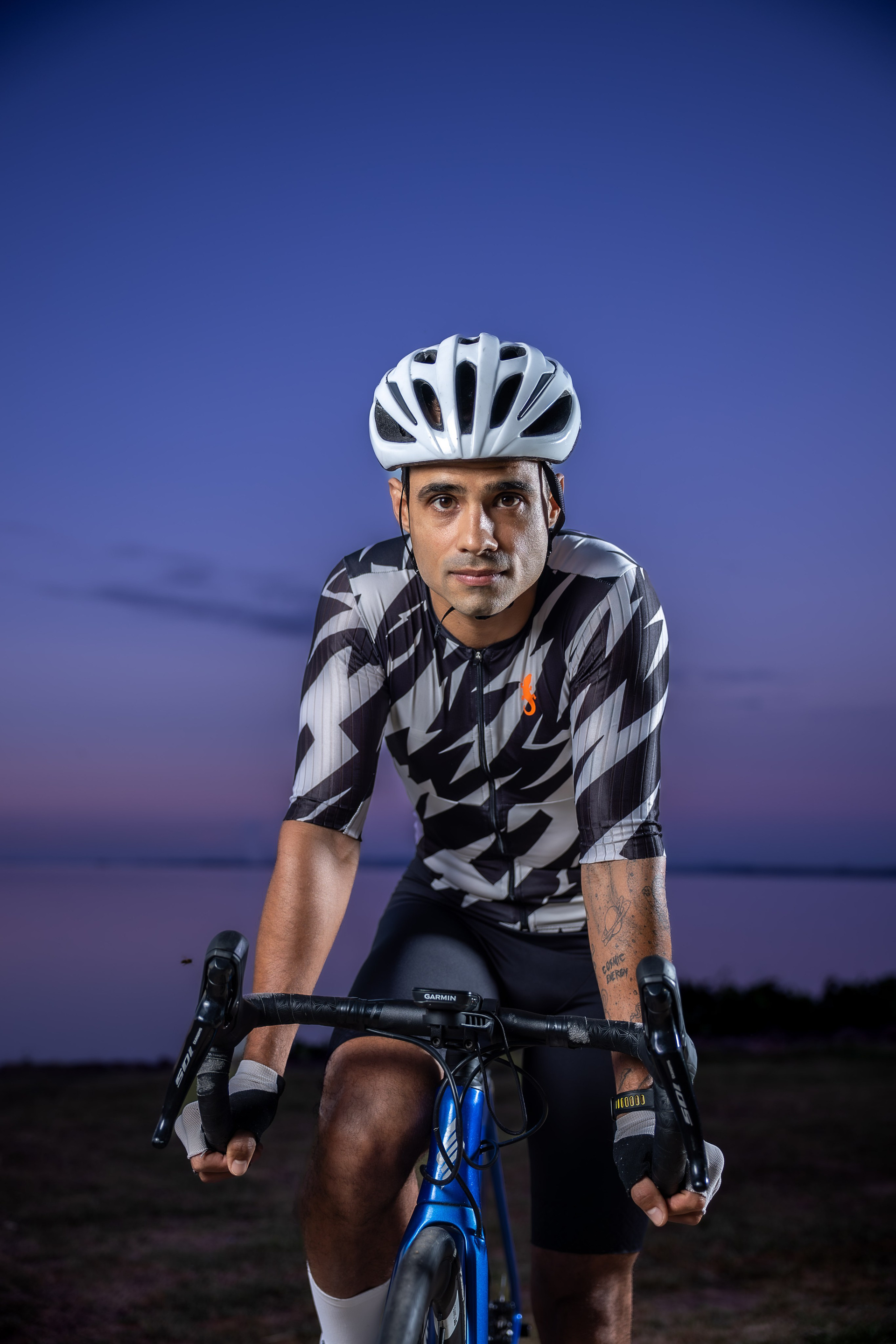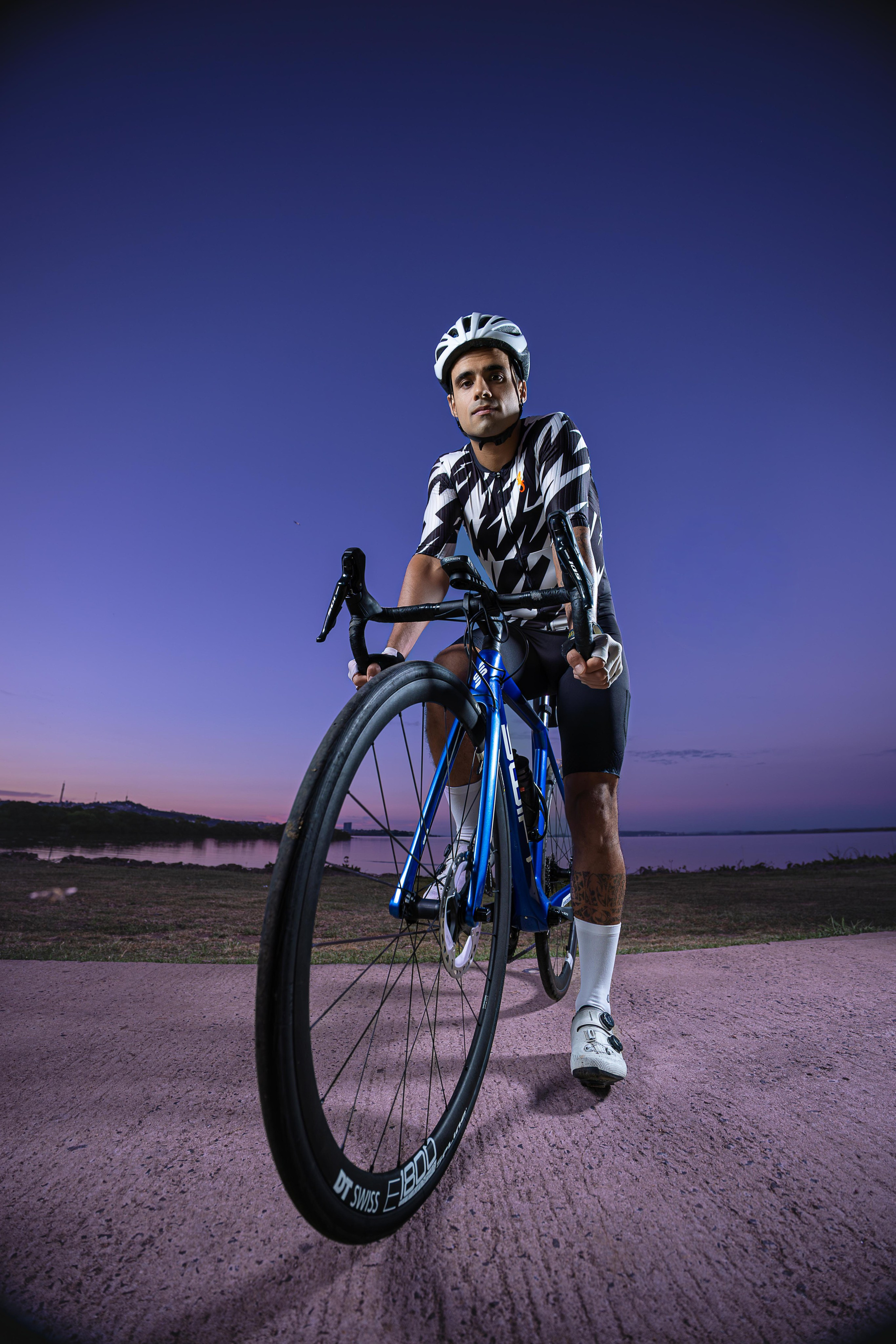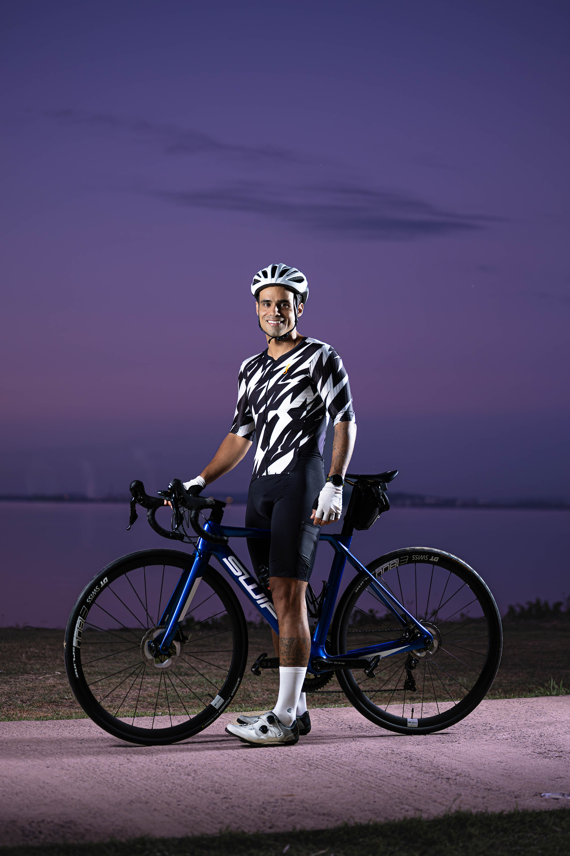 Para quem vive o ciclismo de alta performance, o dia começa cedo. Capturamos o ensaio de Guilherme durante o amanhecer na Orla do Guaíba, aproveitando a luz única que surge com os primeiros raios de sol em Porto Alegre. Utilizamos iluminação estratégica para contrastar a silhueta do ciclista com o céu em transição, destacando a disciplina e o foco necessário para o esporte. O resultado é uma estética limpa e vigorosa, que traduz a essência de quem busca superar seus limites antes mesmo da cidade despertar.